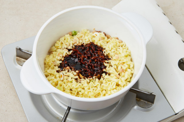 Nấu mì tương đen Otoki theo hướng dẫn trên bao bì.