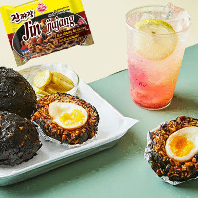 Cơm nắm mì tương đen phiên bản “độc lạ” này lấy cảm hứng từ cơm nắm truyền thống nhưng lại mang hương vị hoàn toàn mới lạ. Thay vì chỉ dùng cơm, món ăn được kết hợp cùng mì tương đen và trứng lòng đào. Sợi mì còn được cắt nhỏ để tạo nên kết cấu dai mềm đặc biệt, hòa quyện hoàn hảo cùng cơm nóng.