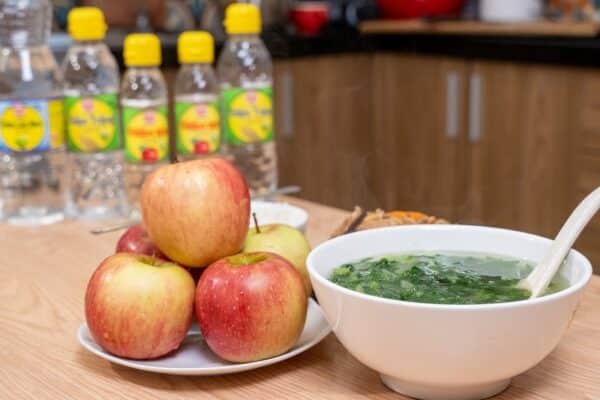 - Làm sạch rau củ bằng cách pha giấm và nước tỷ lệ 1:20 và ngâm trong 10 phút.