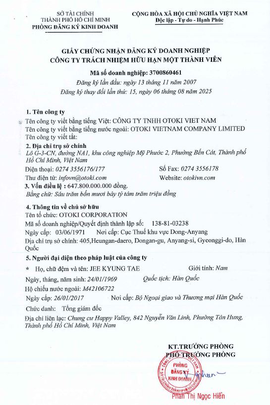 Tên công ty viết bằng tiếng nước ngoài: OTOKI VIETNAM COMPANY LIMITED